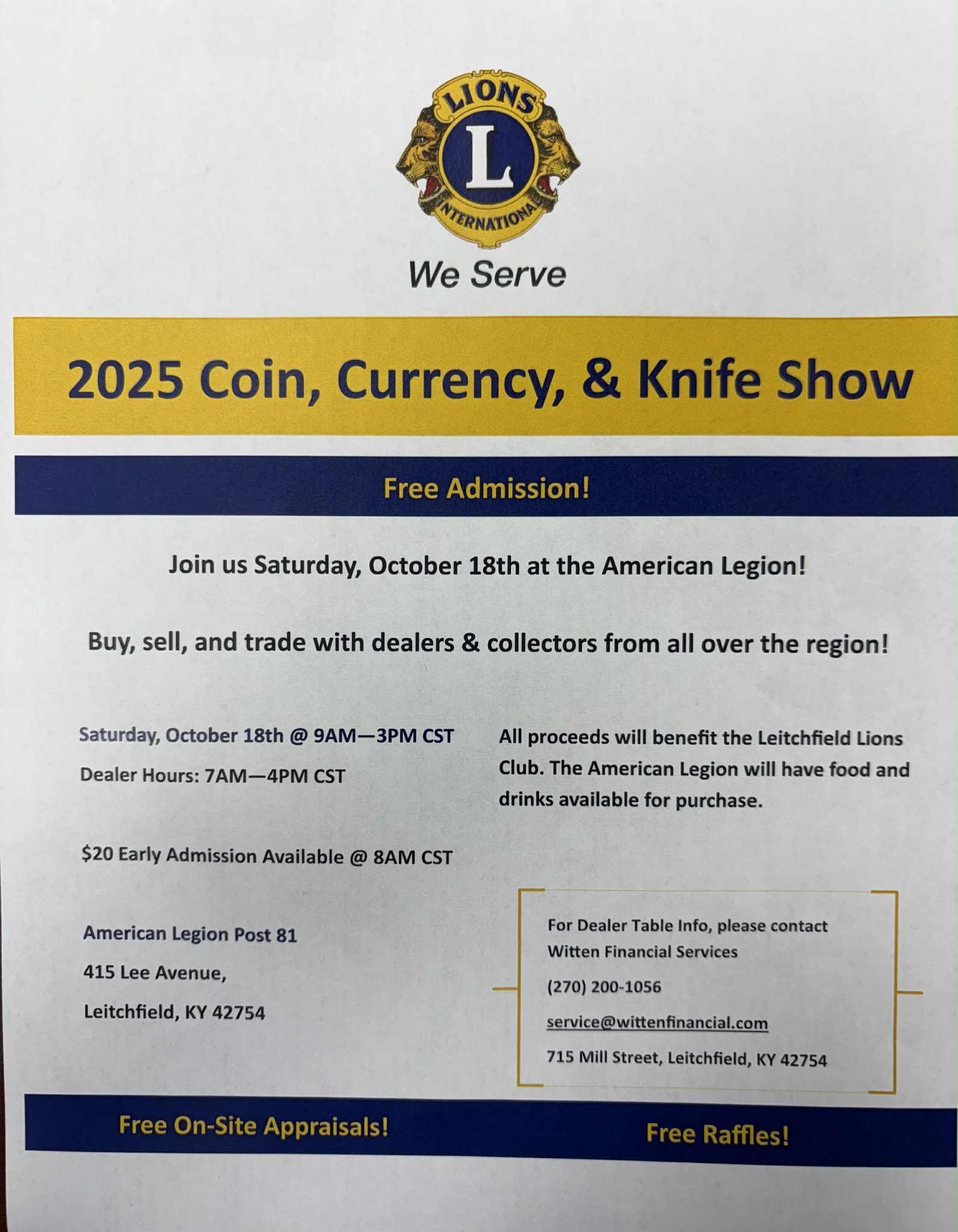 American Legion Post 81 415 Lee Street, Leitchfield, KY, United StatesSaturday, October 18th at the American Legion!